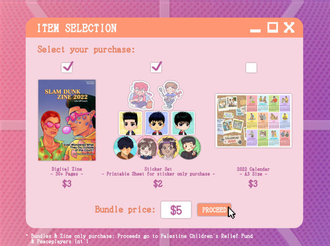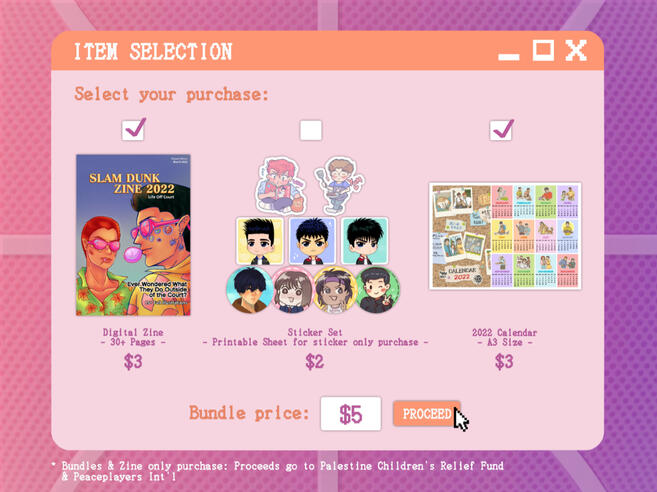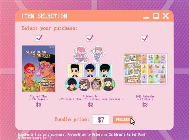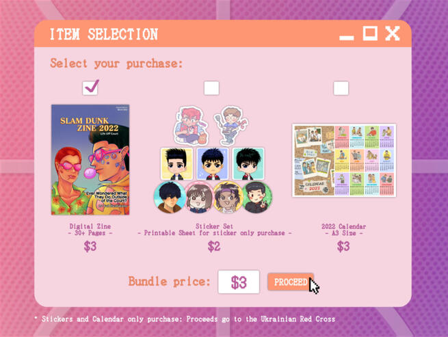 2) Based on the products you selected, you will be directed to one of the charity donation pages to pay a donation amount. We ask you to consider paying the suggested donation amount as listed on the Zine Product/Package Summary page.